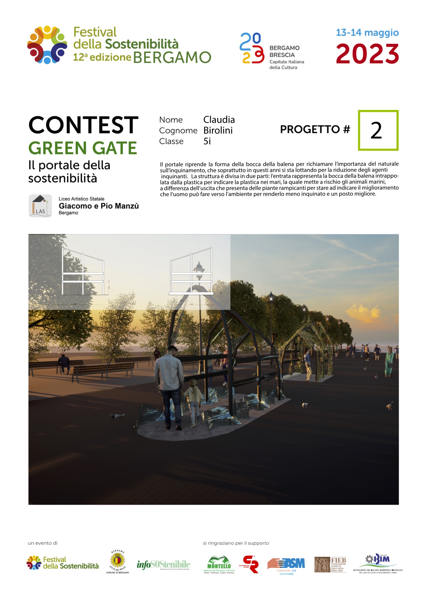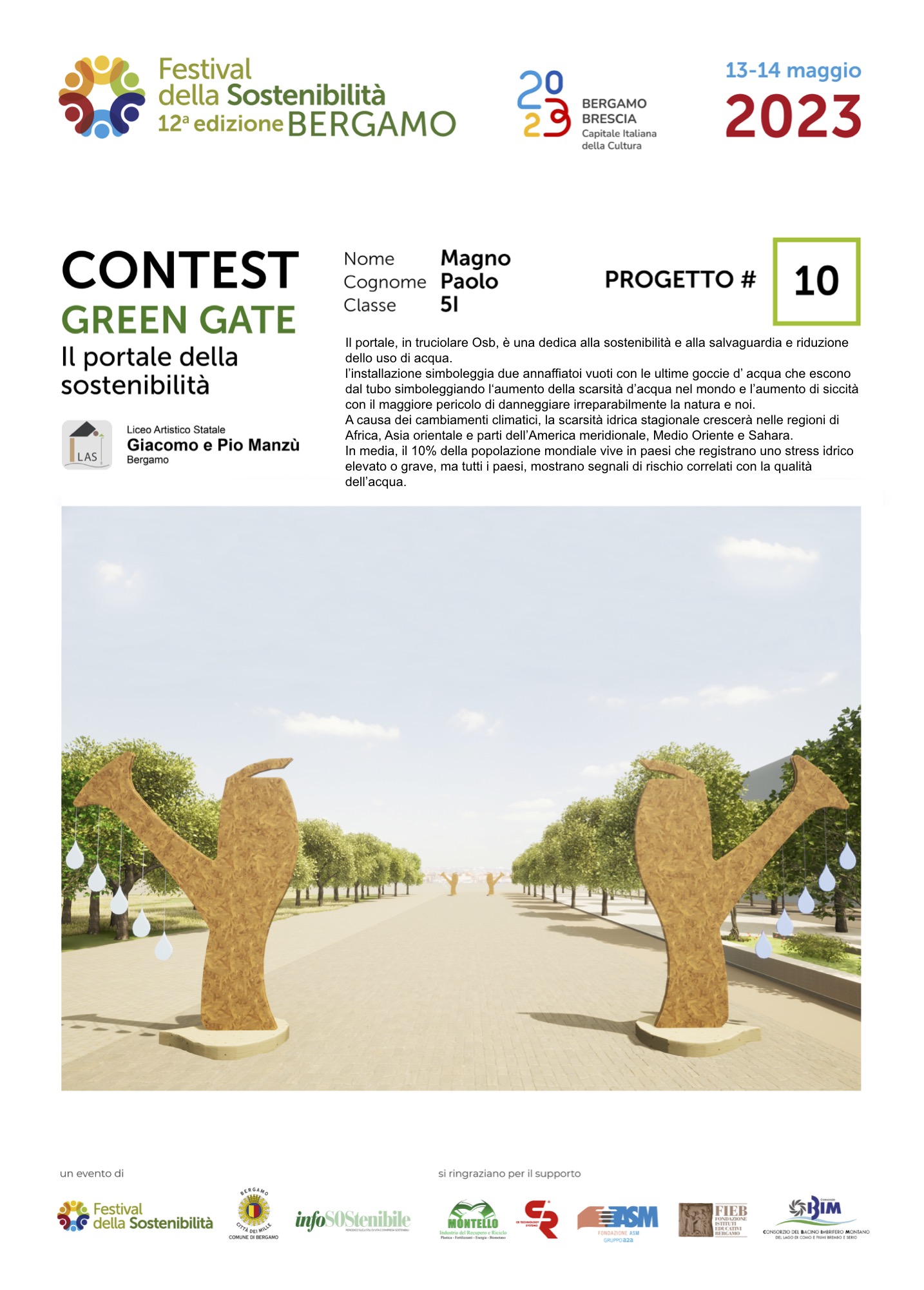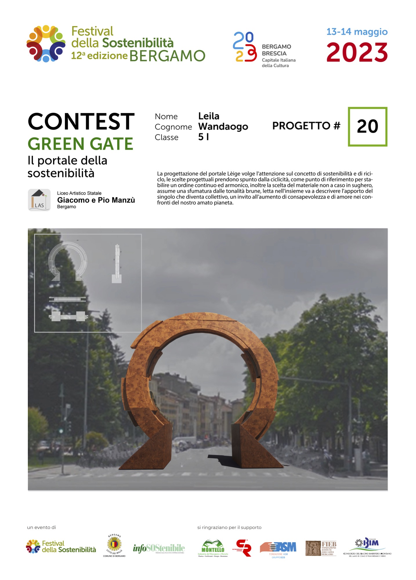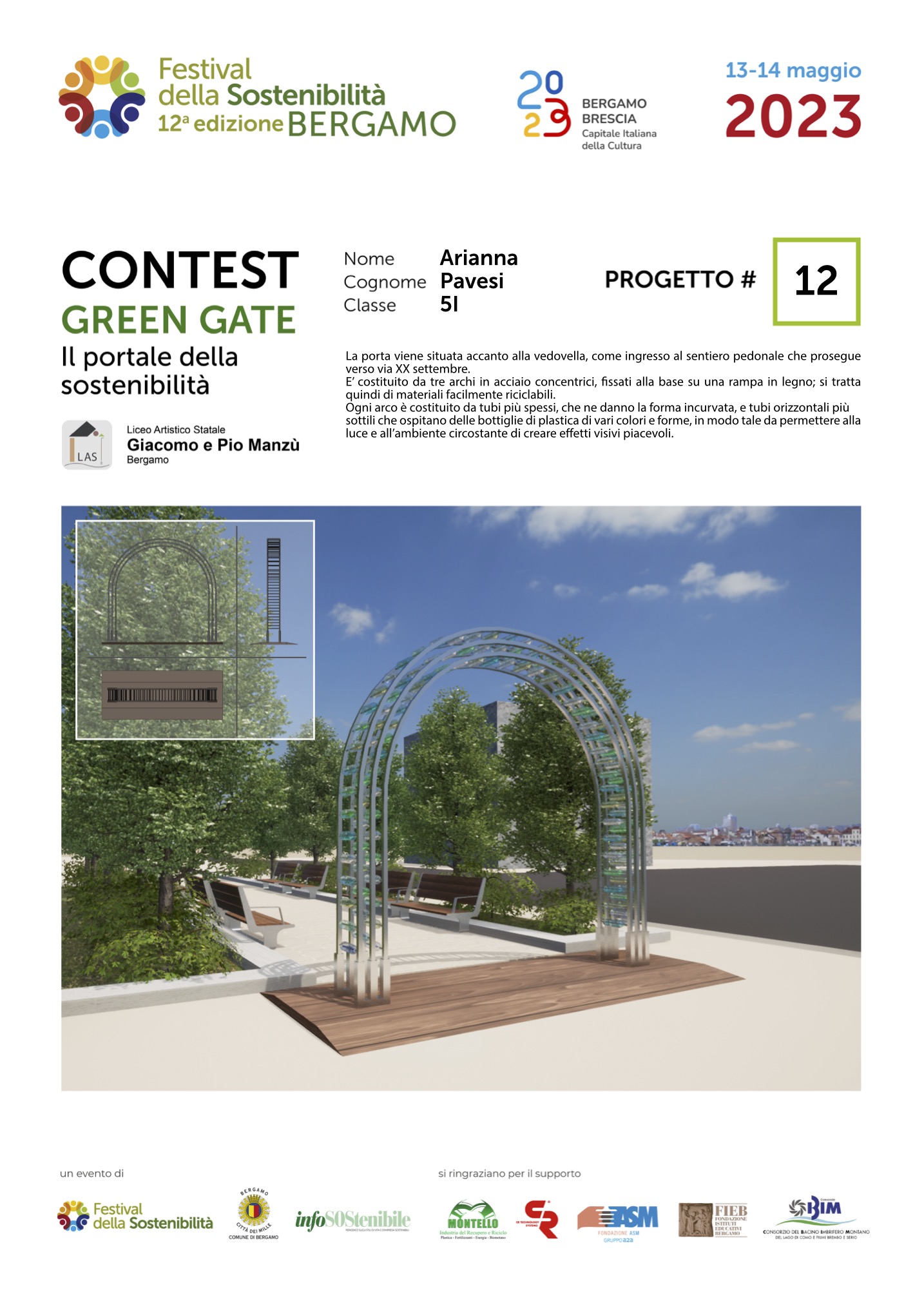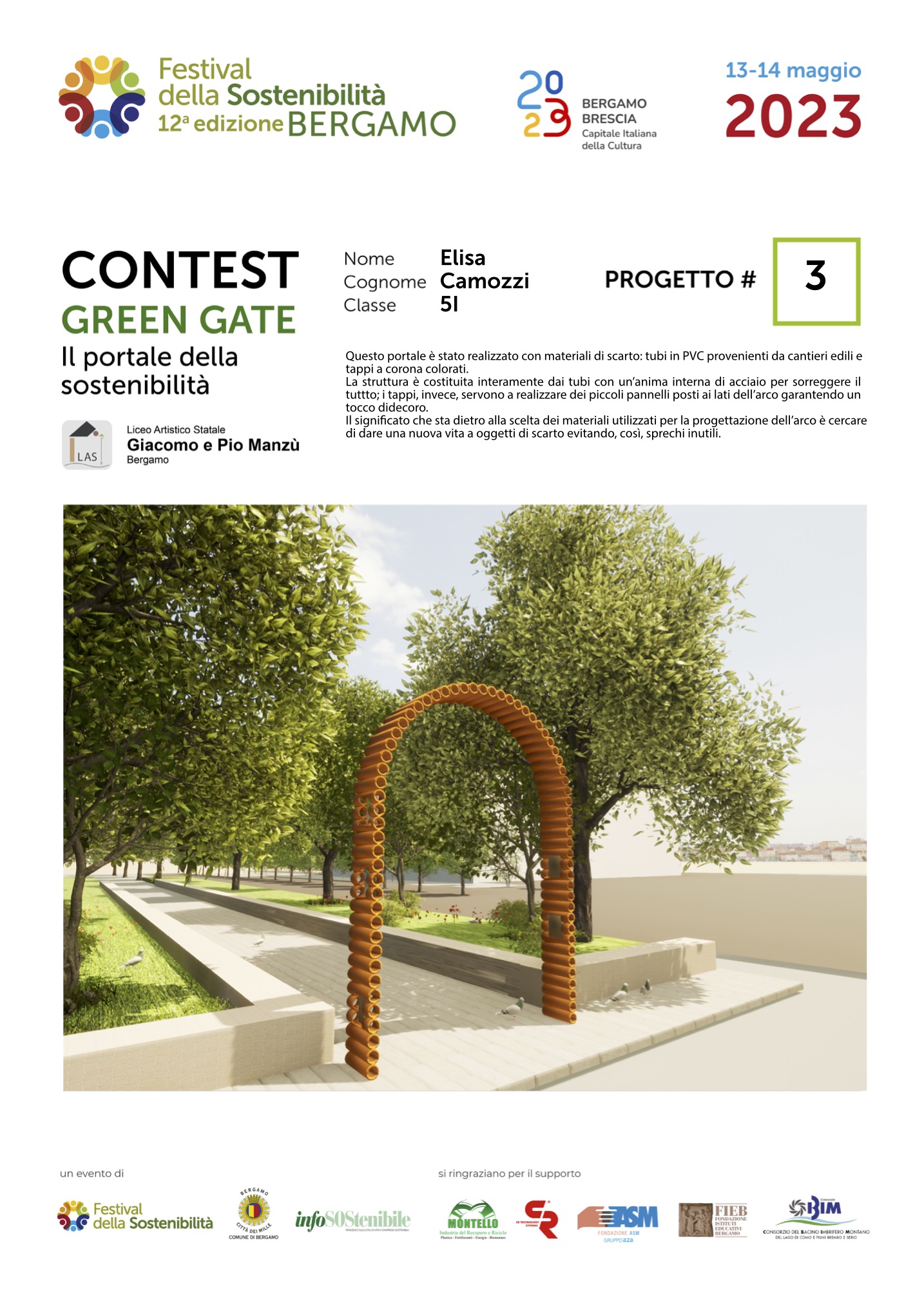 Gli studenti, come dei veri professionisti del settore, hanno concepito ciascuno il proprio Green Gate e, a partire dalla bozza iniziale, hanno sviluppato delle tavole esecutive che riportano la descrizione del concetto su cui si è costruita l’idea, la scheda tecnica e l’elaborato grafico. Le tavole dei progetti saranno esposte lungo il Sentierone durante il Festival e saranno gli stessi studenti a presentarli.